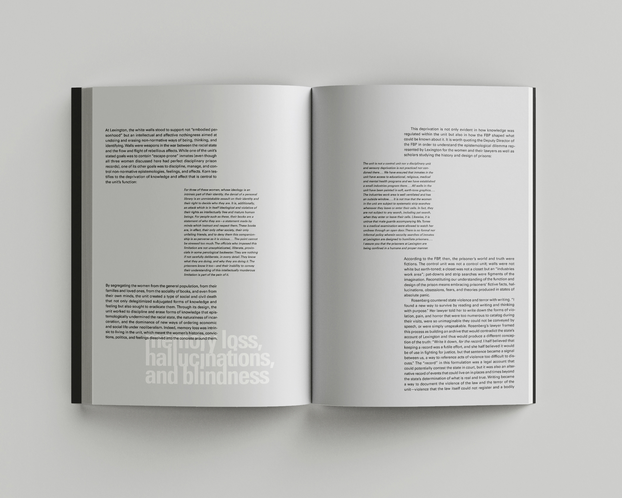 Design for “Nothing Stirred in the Air” by Stephen Dillon, published in Places journal, about the notorious women’s high-security unit at Lexington Federal Prison that used sensory deprivation as a form of disciplinary violence. I tried to invoke the bare, white, fluorescent-lit environment of the unit with the layout and illustrations. I also drew imagery from other buildings with disciplinary designs, such as the slot windows and roof exercise yard of Chicago’s Metropolitan Correctional Center.